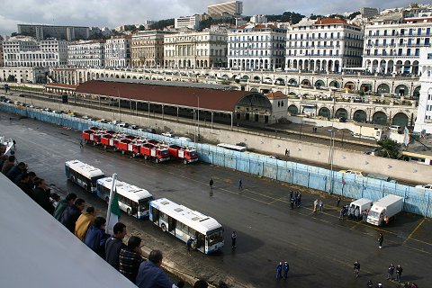 Port : Tassili II, bus, camions d'incendie et front de merAlger - Algérie