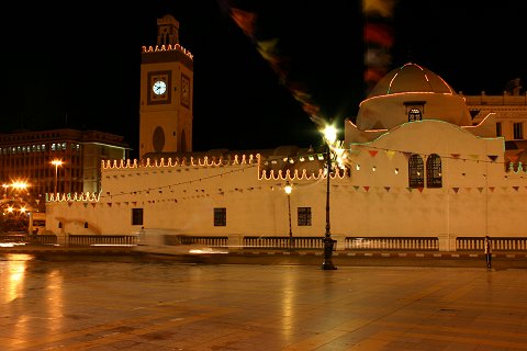 Mosquée Pêcherie : façade de nuit