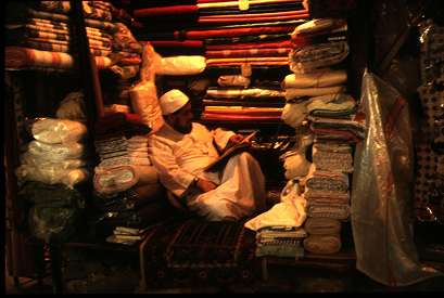 Souk principal : commerçant en lecture